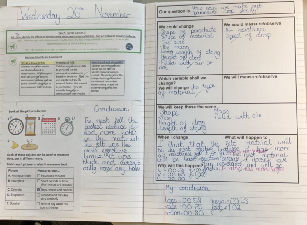 - Pupils demonstrating their understanding of working scientifically and articulate what skills they are using in the lesson.